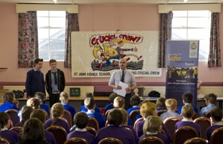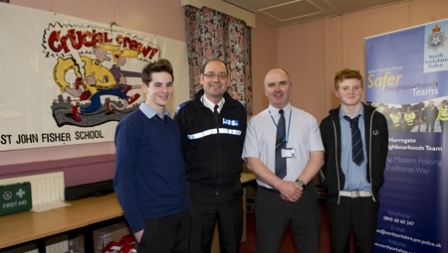 North Yorkshire Police Youth Matters Officer Paul Stephenson, said, “As Coordinator for Crucial Crew, I felt that having an interactive workshop presented by teenagers talking about serious issues would help children identify with and understand the problems surrounding anti-social behaviour before they head up to secondary school. We decided to invite the students from St John Fisher Catholic High School after PC Graham Wilson enthused about their Crimebeat project and it fit in with our schedule very well. Over the course of the programme, verbal evaluation from teachers and pupils has been excellent. The boys have answered many questions and helped alleviate some of the natural anxieties that Year 6 children have about entering the secondary school environment. The video has been very well received, the boys have been a credit to the school and we wish them luck in the regional Crimebeat competition in April.”