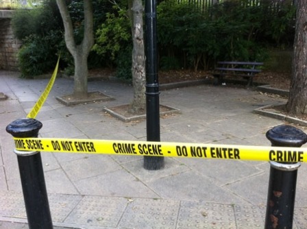 The crime scene remains cordoned off this morning