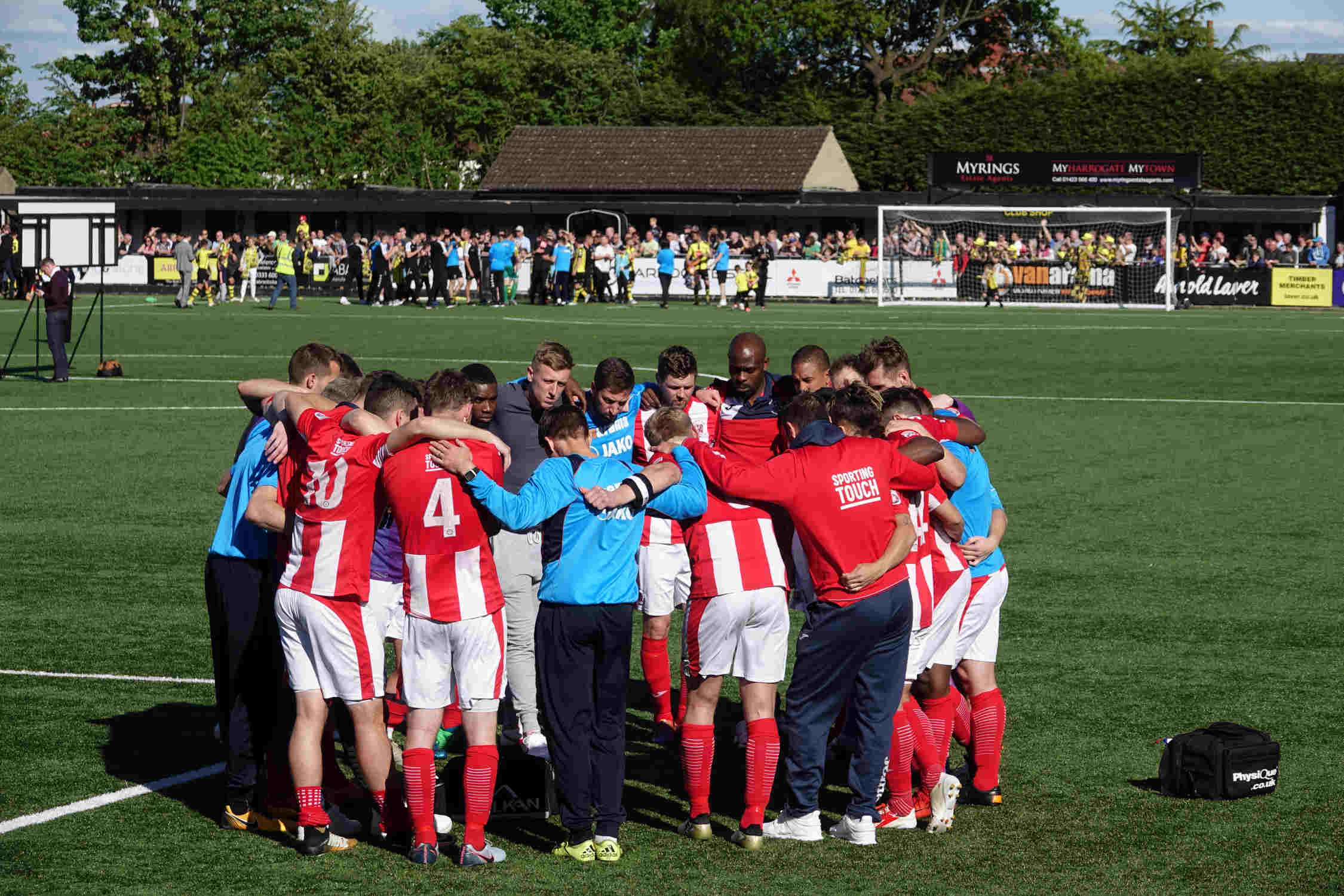 It just remained for the play off final trophy to be presented to Harrogate before the ecstatic, three thousand crowd,filed out to prepare for life in the National League,after wishing Brackley all the best for next Sunday’s F A Trophy final against Bromley.