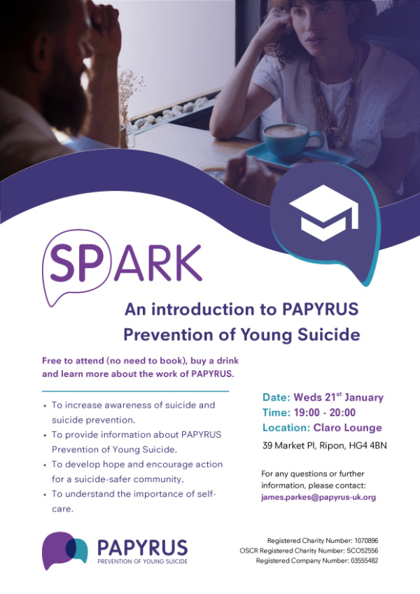 A free event is being held in Ripon on 21 January 2026, with the aim to help educate around the issue of suicide in young people, and the work of Papyrus.